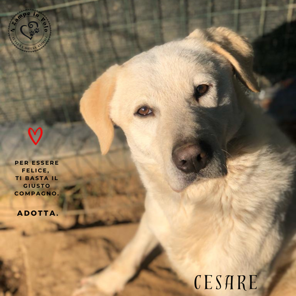 Io sono Cesare, ti prego ascolta la mia storia, non passare oltre; la mia mamma è stata recuperata incinta dalle zie di 4 Zampe in Volo. Sono uno di quei cani considerati invisibili e non capisco perché, sono bravo con gli altri amici pelosi, abituato alle persone; adoro le coccole, mi piace giocare e sogno ogni giorno una famiglia.