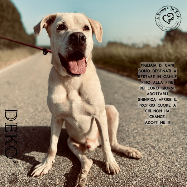 Ciao sono Dekò sono nato nel 2016, sono nato in Sicilia quando ero cucciolo mi hanno investito, delle brave persone mi hanno aiutato, mi hanno fatto operare....purtroppo la mia zampina posteriore non si è risaldata correttamente....ora sono in una struttura al nord, stò prendendo degli integratori e faccio qualche ciclo di fisioterapia. Spero di trovare una famiglia dal cuore grande che vada oltre la mia disabilità e che mi accetti con questa simpatica andatura particolare ma che fà di me un cane SPECIALE ....... Sono gioioso, amo la compagnia dei miei simili e degli umani, sono sterilizzato e autosufficiente. Vorrei provare anche io la gioia di essere amato da una famiglia per sempre..... ADOTTAMI !!!!