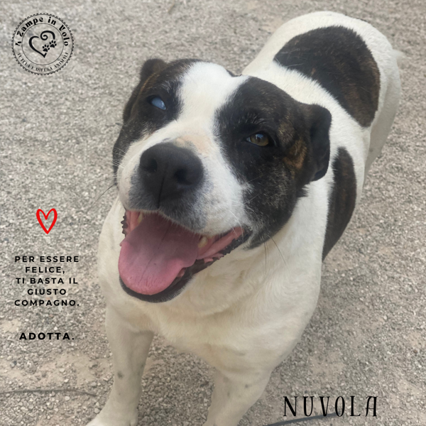 Nuvola, questo è il mio nome, sono una super mamma; le zie mi hanno salvata quando ero incinta dei miei piccini, mi hanno portata al sicuro ed ho potuto partorire tranquilla. Adesso finalmente sono sterilizzata, ma ho tanto bisogno di una famiglia che abbia la pazienza di insegnarmi cosa vuol dire famiglia, non ne ho mai avuta una.