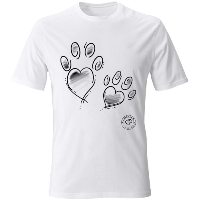T-Shirt Adulto Solidale "Una Zampa sul Cuore" con grafica realizzata dalla nostra Volontaria Giulia Polizzano, il ricavato sarà utilizzato per la cura ed il benessere dei tanti pelosi che seguiamo ogni giorno.